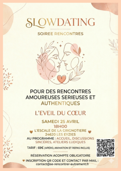 Slowdating : Venez faire des rencontres authentiques en DORDOGNE, aux EYZIES le 25 AVRIL 2026 !